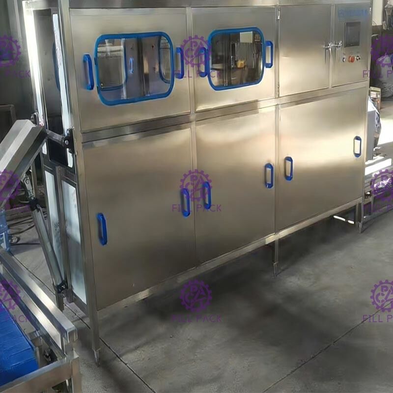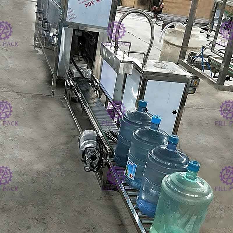 Questa linea di riempimento dell'acqua da secchio è integrata con le funzioni di lavaggio-riempimento-coperta dei barattoli;
