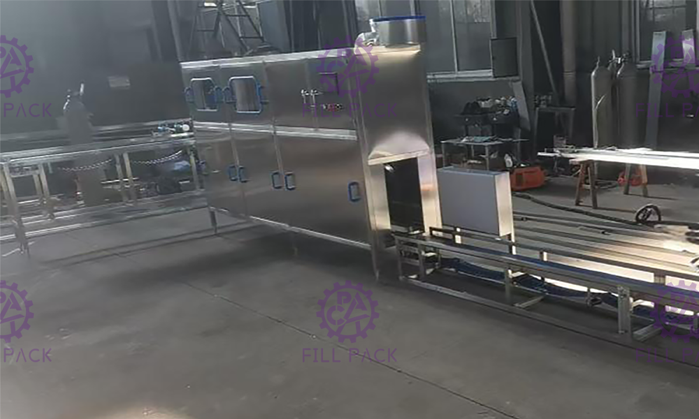 L'impianto di produzione di acqua Gallon comprende un de-capper e una lavastoviglie semiautomatici, un rivestimento-riempitore-capper monoblocco, un trasportatore a rulli, un tunnel di riduzione delle etichette, una luce di controllo, una macchina di codifica a rotolo di inchiostro solido