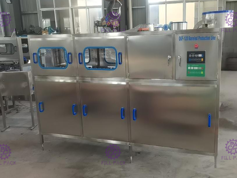 (2) Questa linea di produzione di riempimento in barile integra in un'unica unità la lavastoviglie, il riempitore e il sigillatore.