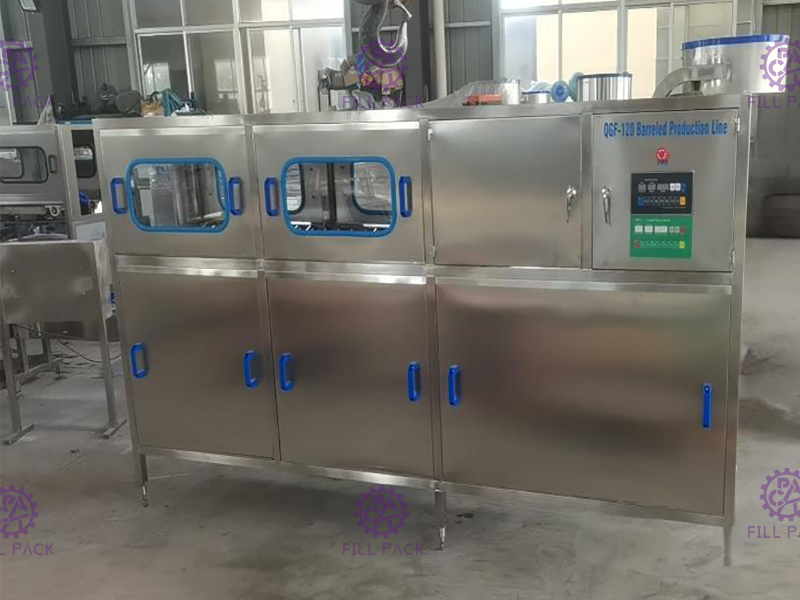 (1) Questa linea di riempimento produce appositamente 3 e 5 galloni di acqua potabile in botti.