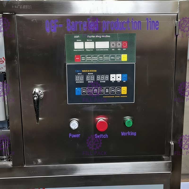 Il lavaggio sarà suddiviso in 3 parti, il primo processo è con liquido disinfettante, il secondo processo è con lavaggio con acqua riciclata, il terzo processo è con acqua pura;i barattoli cadranno sulla piastra angolare dal portabarattoli con una catena di trasmissione con forza di gravitàPoi i barattoli vengono spinti spingendo il cilindro sotto la testa di riempimento, quindi iniziare il riempimento; il volume di riempimento può essere controllato impostando il tempo di riempimento.I barattoli riempiti saranno spinti sotto la testa di tappo da barattoli vuoti dopo. Lavoratore mettere un sacco di tappi disordinati nel caricatore del tappo, cap loader sarà classificare il tappo automaticamente per caricare giù nel cap rail.Il cappuccio cadrà sul collo del barattolo., quindi il cilindro di tappo farà il tappo automaticamente dal cilindro di pressione del tappo.