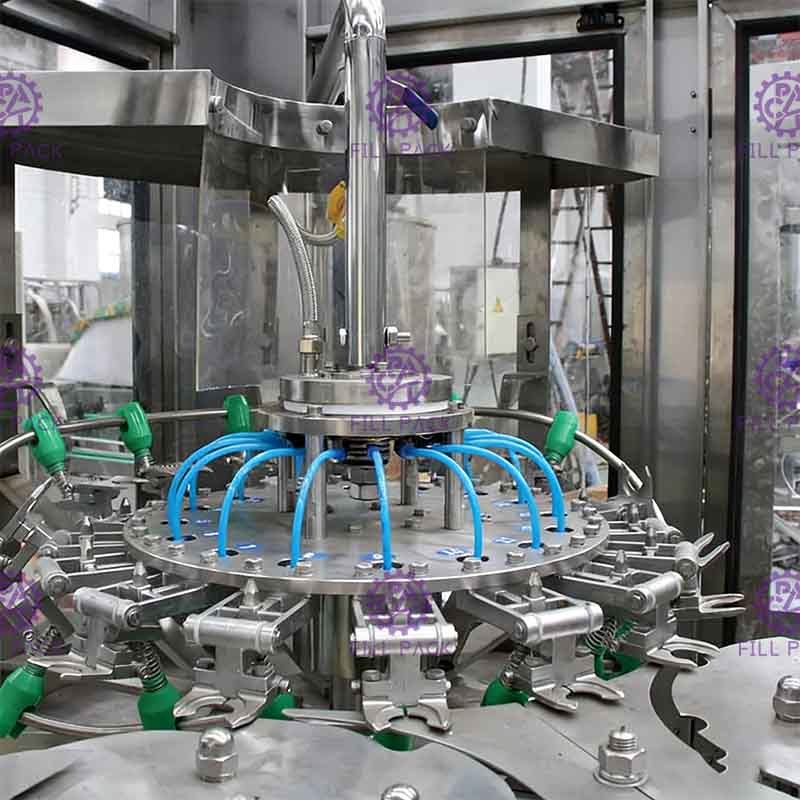 4) Il sistema di riempimento è dotato di un sistema di circolazione CIP per lavare la condotta e di una finta tazza utilizzata per la pulizia della valvola di riempimento.efficacemente.