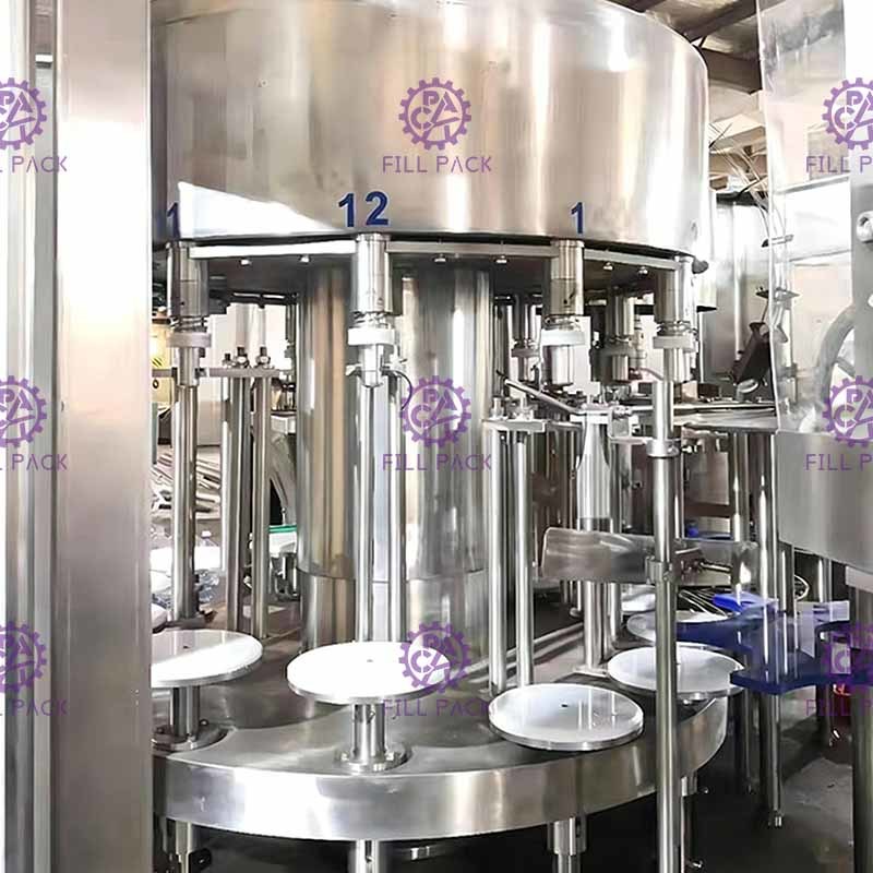 L'apparecchiatura viene utilizzata nella produzione di bevande non gassate di succo caldo o acqua fredda confezionate in bottiglie di poliestere. Il lavaggio, il riempimento e la tappatura sono integrati in un'unica macchina. Nel design viene impiegata la tecnologia più avanzata proveniente da Giappone e Germania. Viene utilizzato il riempimento a superficie liquida fissa per gravità. Il riempimento è veloce, la quantità di liquido è controllata con precisione e si evitano gocciolamenti e perdite. Nelle bottiglie viene utilizzato il processo di lavaggio a pinza a molla. Le bottiglie vuote possono essere capovolte di 180~ lungo la guida di trasporto. Ci sono due volte di lavaggio interno ed esterno, l'efficienza del lavaggio delle bottiglie è elevata. Il riempimento tramite valvola di riempimento a controllo del livello del liquido a molla, senza gocciolamento. Il livello del liquido è facile da controllare. Tutta la costruzione è realizzata in SUS304, non ci sono angoli morti all'interno della valvola di riempimento. La coppia magnetica viene utilizzata per la tappatura a vite. La potenza della tappatura a vite può essere regolata senza gradini. La potenza della tappatura a vite può anche essere fissata e i tappi non verranno danneggiati, la tappatura è affidabile. C'è un serbatoio elettrico di riscaldamento a freddo racchiuso nell'intero sistema, appositamente per mantenere la temperatura di riempimento a caldo durante il riempimento di succo caldo. E può anche interrompere il riscaldamento tramite un semplice guasto elettrico per il riempimento di acqua fredda. Non necessita di un sistema a vapore extra per funzionare insieme. L'intera macchina è controllata da PLC con touch-screen come interfaccia uomo-macchina. La quantità di bevande nel serbatoio di stoccaggio può essere controllata automaticamente. Il riempimento e la tappatura si interromperanno automaticamente quando non ci sono bottiglie. Quando le bottiglie vengono bloccate in modo errato o quando i tappi non sono disponibili, la macchina può essere arrestata automaticamente. La tecnologia di cambio di frequenza viene utilizzata per regolare la velocità di funzionamento senza soluzione di continuità. La capacità di produzione può essere visualizzata digitalmente e può essere regolata comodamente.