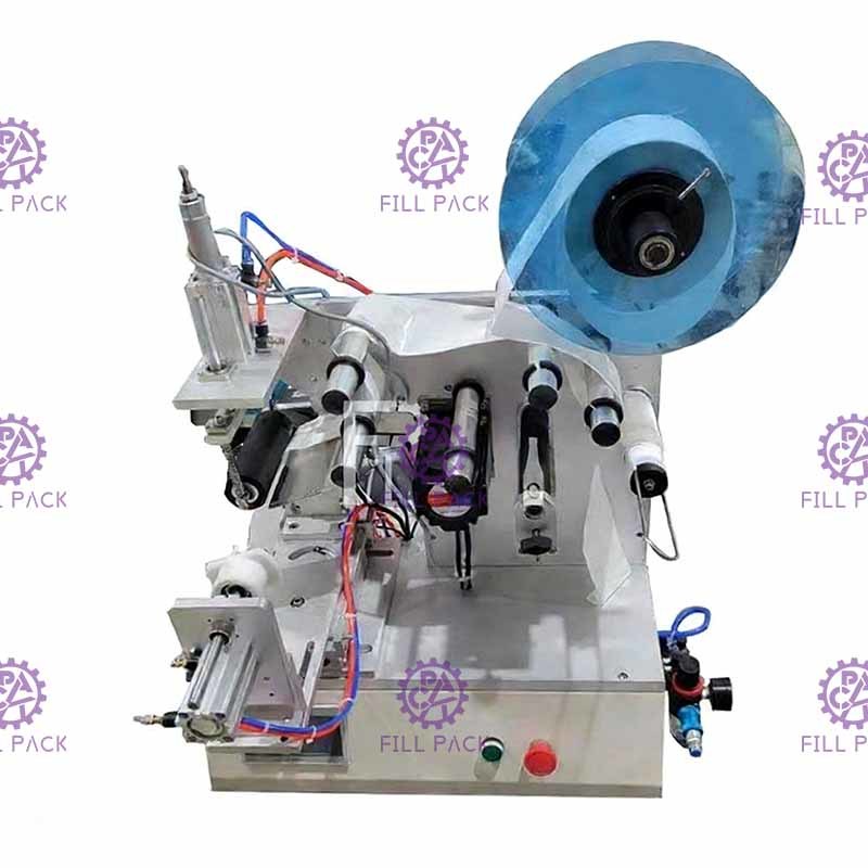 Macchina etichettatrice semi-automatica adesiva per bottiglie quadrate su 3 lati o bottiglie rotonde